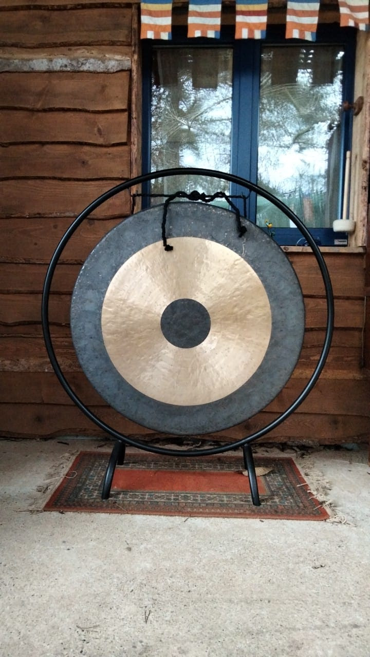 - A l’extérieur, un gong imposant, rythme désormais les samous en sonnant l’heure des pauses ou de la fin de l’activité. Merci, là encore , à la donatrice, une pratiquante de la sangha des Pruniers.
